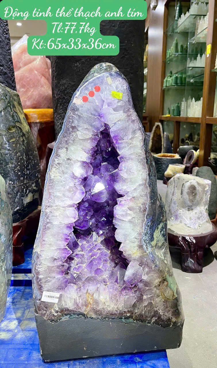 Động Tinh Thể Thạch Anh Tím Vỏ Mã Não – Trọng lượng 77,7kg, Kích thước 65x33x36cm