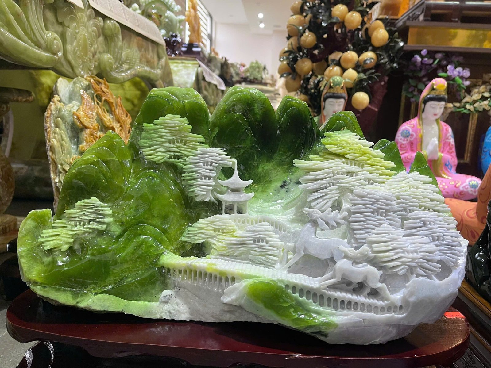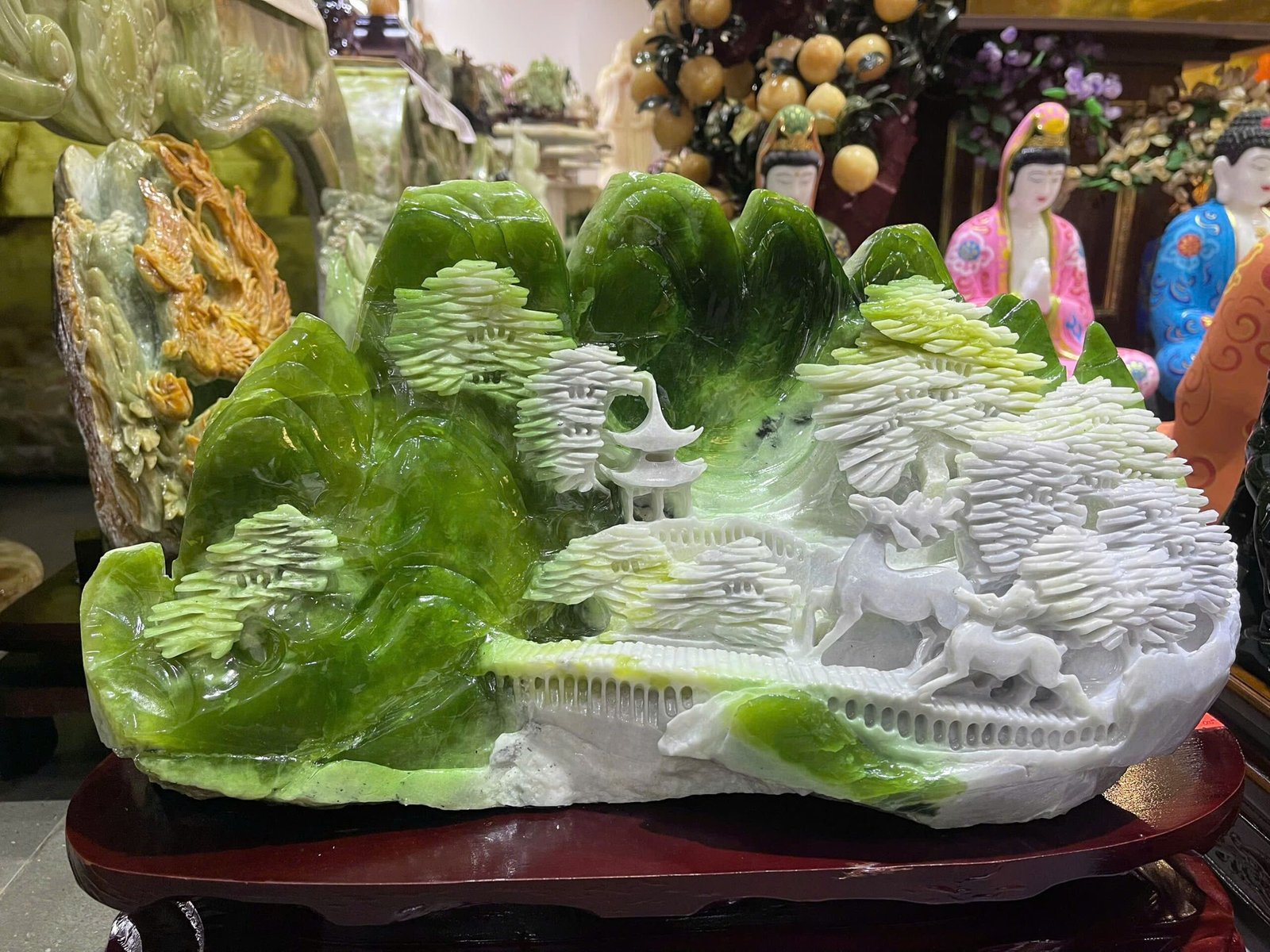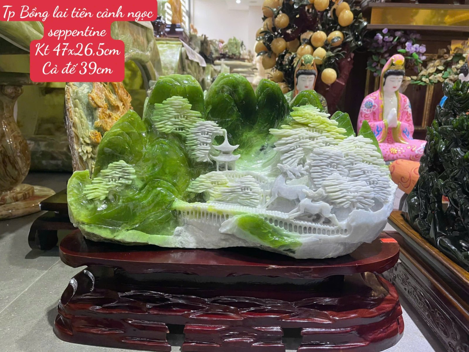 👉 Bồng Lai Tiên Cảnh Ngọc Serpentine KT 47×26,5cm – Tác phẩm đẳng cấp giúp không gian thêm sang trọng, thanh tịnh và hút tài lộc.